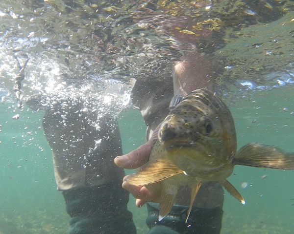 Trout are also easier to sneak up on in riffles. The books written by anglers like Vince Marinaro or Brian Clarke and John Goddard have demonstrated how trout view the outside world through a circular "window" surrounded by mirrors. The radius of this window gets smaller the nearer the surface the trout is lying and conversely increases the deeper the fish swims. For instance if the fish is lying at a depth of six inches its view of the outside world is confined to an area at the surface about the size of a saucer. But if its six feet down in a deep pool this increases to a radius of over five feet. This helps explain why, with a careful approach, its possible to get up close to fish holding in shallower water without spooking them. Which in turn makes life a lot easier as far as casting and presentation is concerned. We all have favorite places along the river, banker spots where we nearly always hook up. Thinking about it only one of mine is a pool, the others are all riffles or runs. Next time don't walk past ... give them a try ... you'll have a lot of fun.