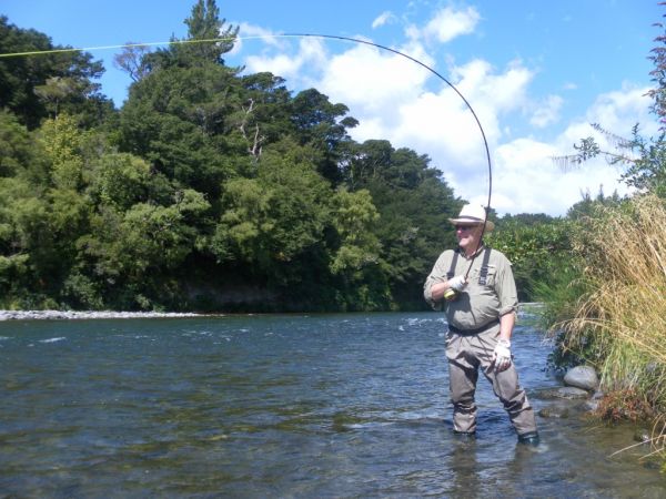 Peter Gibbinson and his lovely wife Avril were on their first trip to New Zealand. If you're a coarse fisherman you'll probably recognize the surname because Peter's dad Jim is a living legend among carp anglers. He's been involved in the development of modern carp fishing techniques and equipment for over 45 yrs and is still a prolific writer. Although Peter has a busy career in the banking industry in Singapore he shares his fathers passion and fishes whenever he can. A few years ago he bought his own 35 acre gravel-pit back in the U.K which is used by a fifty member syndicate and has already thrown up huge carp, double figure pike and specimen tench. It was their first serious attempt at fly fishing and I'm happy to report they loved it ... more Tongariro converts.