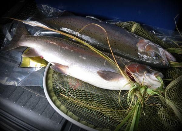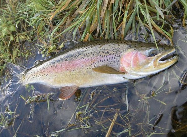 But food isn't the only reason they're down deep. Trout entering the river to spawn instinctively know how to conserve energy for the task ahead. As they travel upstream they stay close to the bottom where friction slows the water as it passes over the riverbed. During the bigger runs you will occasionally see some of the fish " porpoising " as they pass by. But no one seems to know why they do this and I just call them happy trout.