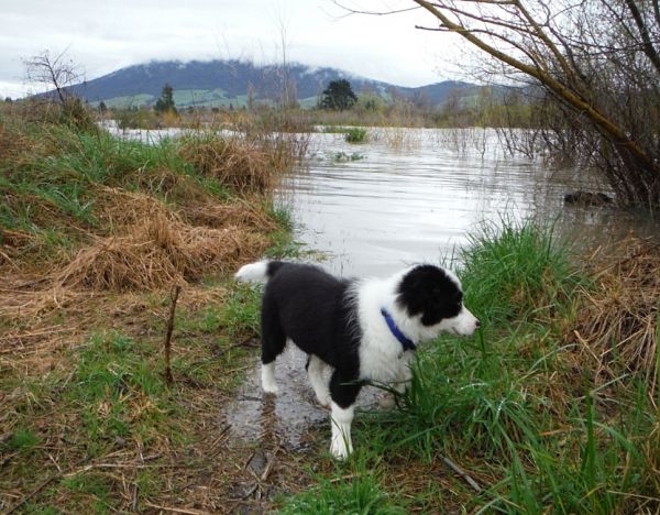 I went for a look around after breakfast and Blue couldn't quite understand where his favorite track had gone. We only went downriver as far as the Bain car park because that was under two feet of water at nine o'clock.