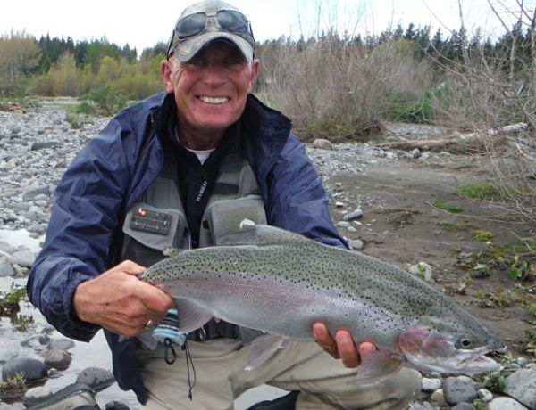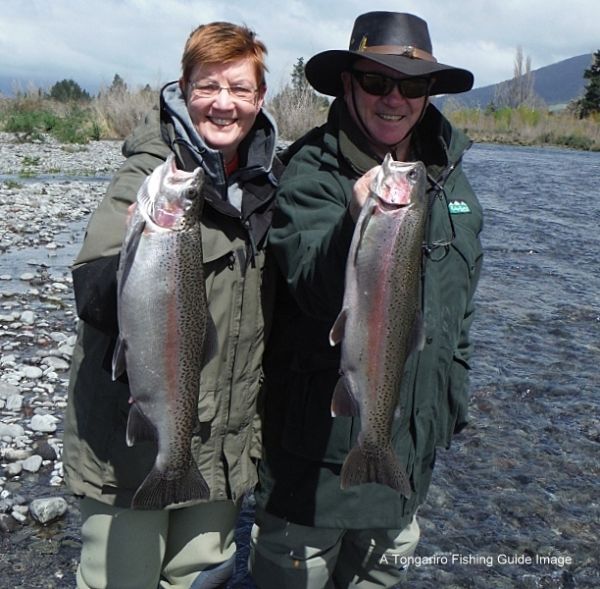 { above } from N.S.W were visiting Turangi for their anniversary. They got got married here thirty years ago and with a surname like theirs they'd just have to love fishing. They had already landed a few on the middle river before finishing off with a nice brace from the Braids.