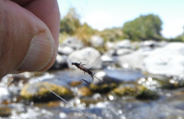 P.T nymphs have been working well again and despite the fact this one looked as if I'd stomped on it with a hob-nail boot, it took four fish including a brown during one of the better sessions.