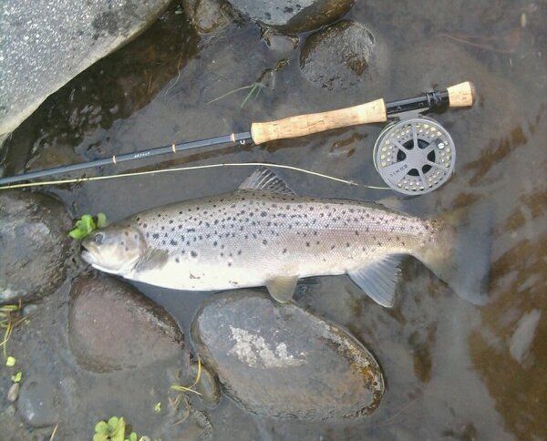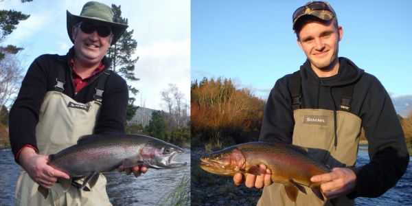 Steve from Creel Tackle playing a brown in one of the town pools. Unfortunately this one threw the hook but his smaller mate pictured on the right wasn't as lucky a day or two earlier.