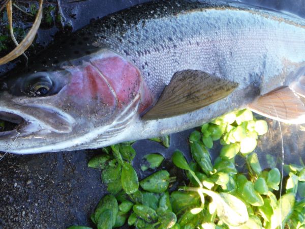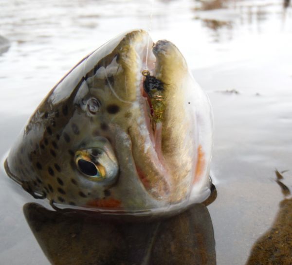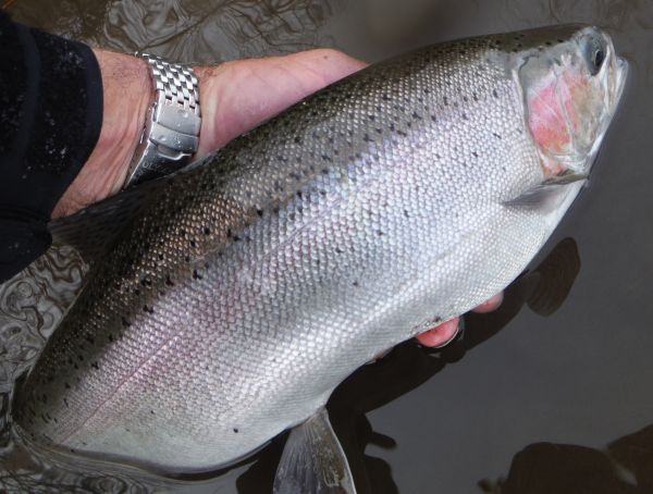 We're still waiting for that first big push of spawning rainbows to take place but there are more and more fish showing up fat with eggs. The main runs continue to show a little later each year and September and October will probably be the pick of the months again this year. More browns amongst the rainbows this week and I picked this slightly skinny one up in Judges a couple of days ago. I thought I'd hooked into another a few casts later but it turned out to be a rainbow jack hooked in one of its pelvic fins. Its amazing how differently a fish fights when its hooked anywhere other than its mouth. You can tell straight away if its tail hooked because you can feel the swimming motion right through the rod. But if its hooked elsewhere it can give the impression you're playing a much better fish than you actually are. Without control of the head these fish are often lost and give rise to many of the tales of the monster trout that got away !