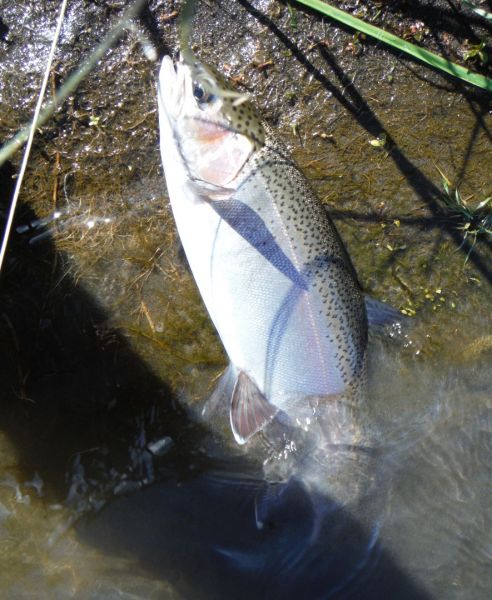 Unfortunately the one on the right was no ten-pounder but I was deliberately fishing for browns when I hooked this little three pound fish yesterday.