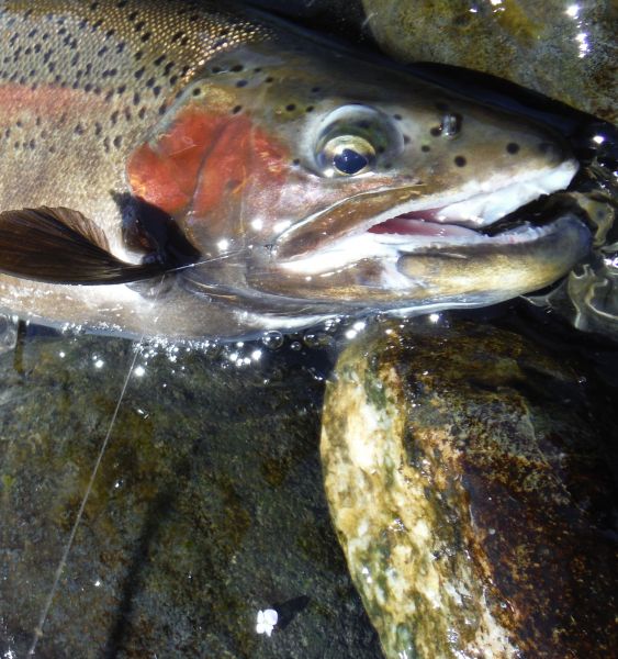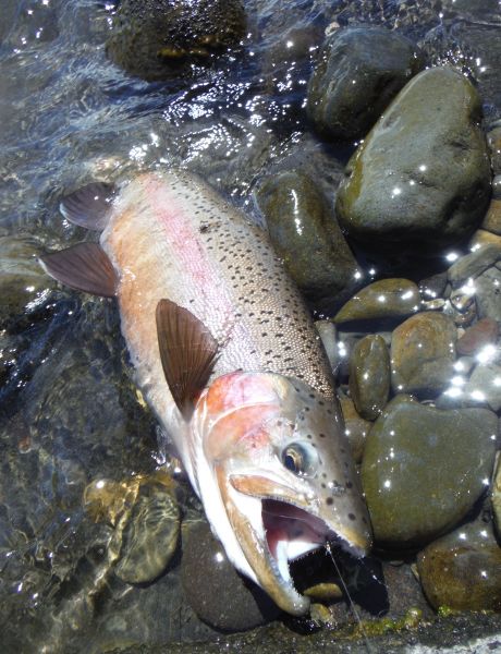 Over the weekend just about every fish I hooked seemed to be a male trout sporting full spawning colors but today it was the turn of the ladies as more fresh runs shot through the town pools.