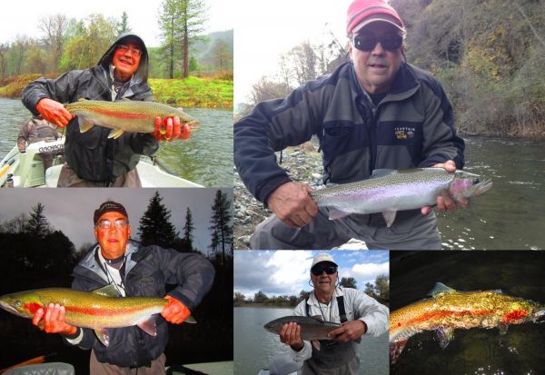 "First a Merry Christmas to you all. Again thanks for wonderful days on NZ waters, that still haunt my thoughts. The best I could do was to head to Northern California and try for some Steelhead. I got some of these fish over hundred miles from the Pacific Ocean, on the Trinity River. There are also trout sized Steelhead called "half pounders" (12 to 18"), and some very large Brown Trout in the river with these migrating fish. There are not many fish in the Trinity system despite lots of recent rain, and folks are worried. They have been declining in number the past few years. These fish were caught drifting small flies under strike indicators while in a drift boat. They really fight." Greg J.