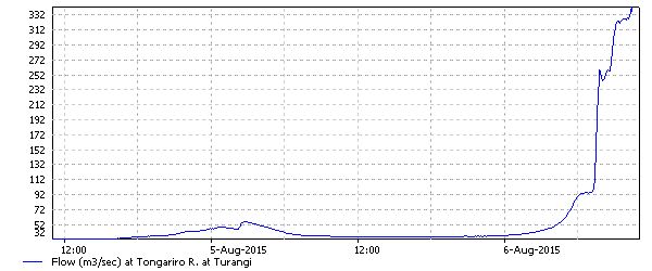 Right ... looks like the river has peaked at about 340 cumecs and is now dropping back. More heavy showers forecast for the next few days so your guess is as good as mine. If we don't get significant rain we should be ok by the weekend but I think if I was planning a trip down I'd probably leave it until later Saturday just in case that forecast is right again.