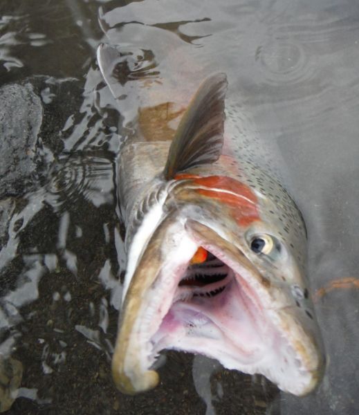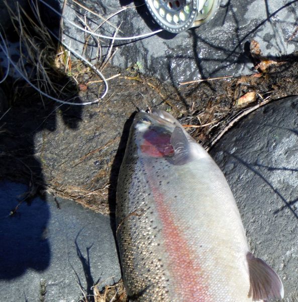 Some of the facts out there about Rainbow trout are incredible. I've mentioned this one before but they can accelerate from nothing to 37 kilometers an hour in about a second. No wonder my reel "blew up". I also mentioned how strong some of the fish seem to be.