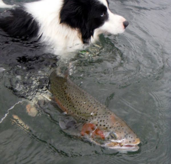 I was in the Blue Pool again yesterday with Mike and Mark and we hit fish straight away. My dog has taken a bit of a shine to Mike and likes to "help" him whenever he can. Mind you he's not short of victims lately.