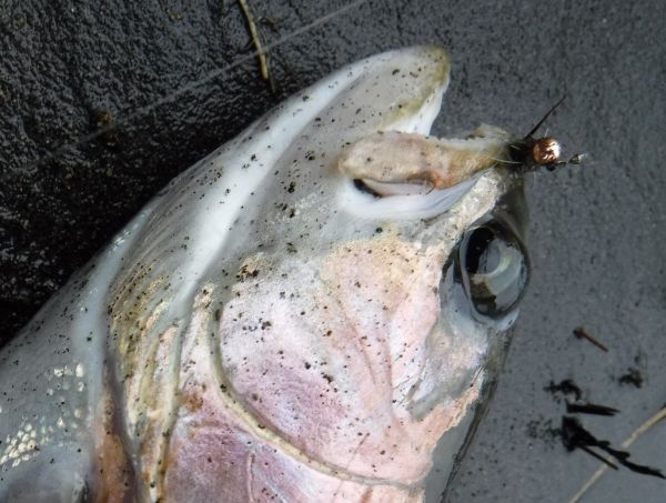 For instance the brown took right under the rod tip in three feet of water. It was fat with eggs and was quickly returned.