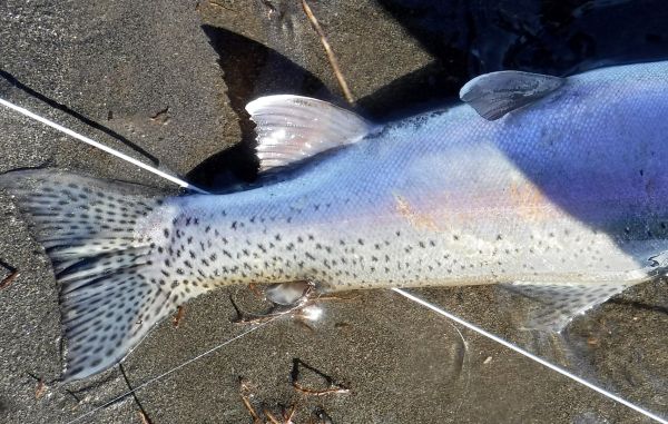 When they first enter the river in their "heightened" state these "new" fish are pretty daft and easy to catch. For the previous couple of years they've been in the relative safety of the lake sustained by smelt. It takes a little while for them to get used to the dangers of the river and the different food supply. Put anything anywhere near them and {for now at least} it will likely get taken for one reason or another.