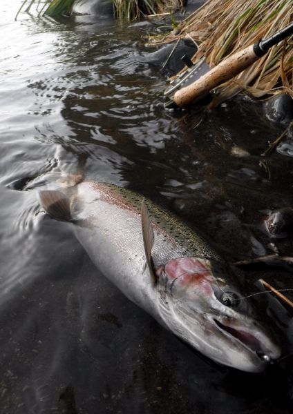 Since the last report I've been trawling the American steel-head and fly fishing sites. Trying to find out if there's any hard and fast evidence out there to substantiate whether or not rainbows eat when they enter the rivers to spawn. And there doesn't seem to be any.