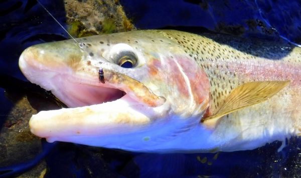 It doesn't matter if its summer or winter, brown trout or rainbows, this fly fished under the big dry will catch fish ... but again, you have to fish it through the right kind of water.