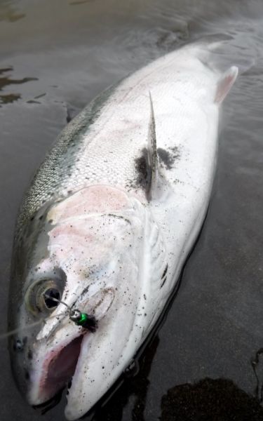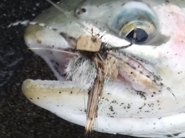 There continues to be a real mixture of fish getting caught. As well as fresh run rainbows and browns we even had one hungry kelt slam the indicator dry when we dropped into Boulder Reach late in the afternoon.
