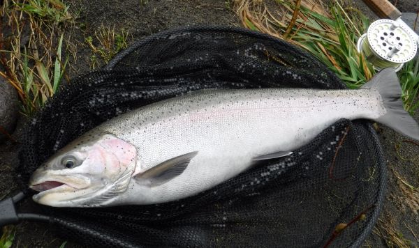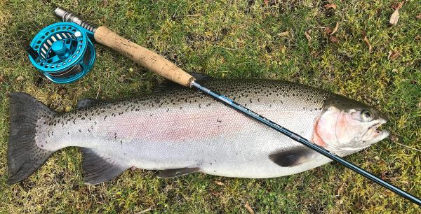 Boulder Reach is a pool Mike knows well and it wasn't long before the indicator slid under and he was into one of several solid rainbows he caught in the fading light.