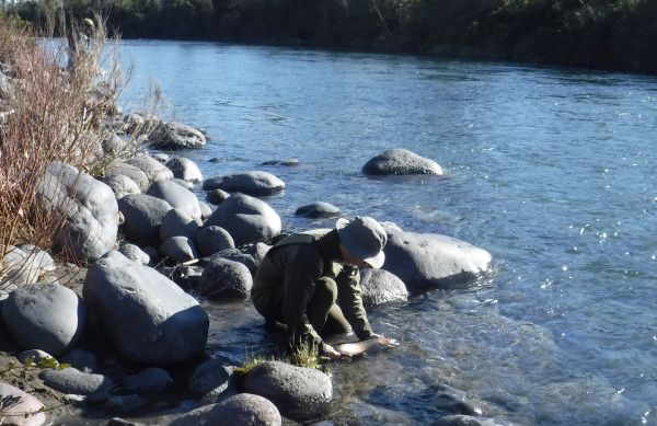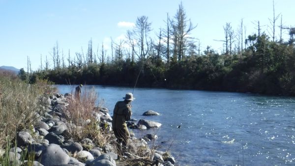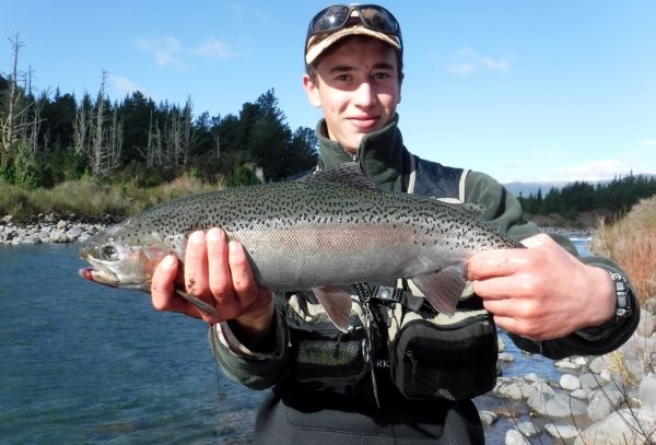 Its always good to see keen young fly fishermen on the river and sixteen year old Caleb had persuaded dad Mark to drive him to the Tongariro after a successful morning fishing the "Hine".