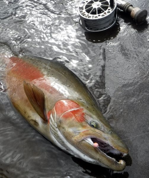 The spate conditions have moved fish around a bit. And as you'd expect now, most anglers "catch" consists of a mixed bag of kelts, spawning jacks and chrome colored hens.