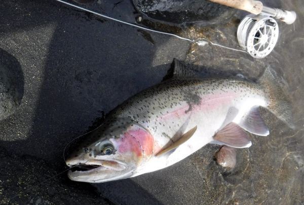 The river bed of the Tongariro is always well populated with caddis. And green caddis imitations have been taking fish for weeks.