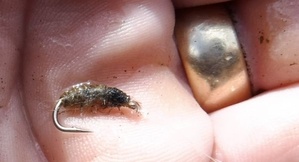The "Brassie" will do a reasonable job of mimicking this small caddis but I've never been entirely happy with it so I'll have a bit of a play next time I'm fumbling around at the vice.