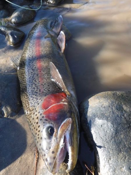 Having a selection of flies will improve your chances on the Tongariro, particularly when its tough going. Remember you're not always fishing for gullible fresh run spawners and they soon learn whats on offer in the river. Just about all the rainbows we caught were what you'd call "residents" and had been in the river sometime.