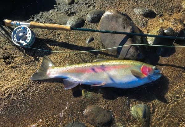 Those of you that visit Creel will know how keen he is on Czech and tight line nymphing and as I was landing a rainbow in our first port of call a glance further downriver revealed that Grant was obviously hooked up to something much better.