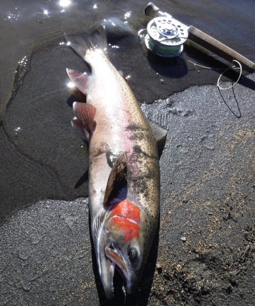 I could see several rainbows in Spot X and a brown tucked in just below the tree at the top of the stretch ... but the wind made it impossible to get at them. Although it didn't stop this shag {pictured right} from grabbing one.