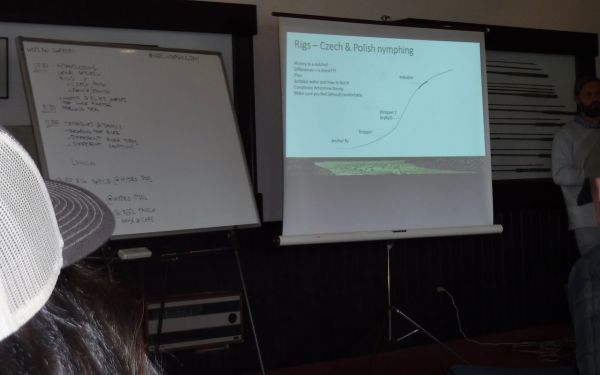 After a break for lunch we all met up at the Hydro car-park to put theory into practice. This started with detailed advice from both Antti and Des on how to set up a Czech nymph leader. Then everyone interested in having a go was given individual attention once they waded out and started fishing.