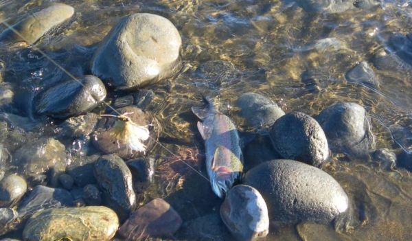 Before heading home I fished until mid-day so stayed close to town. First port of call was my favorite pool and I dropped in below a couple of other anglers who were already there and we landed a couple of fish between us. The pool itself didn’t produce that much but one angler fished a well known spot above and did ok. I wasn’t that surprised because over the weekend this popular pool had a right thrashing from fisho’s chasing the browns and probably needs resting for a day or two.