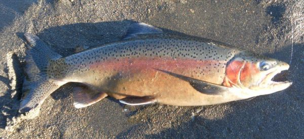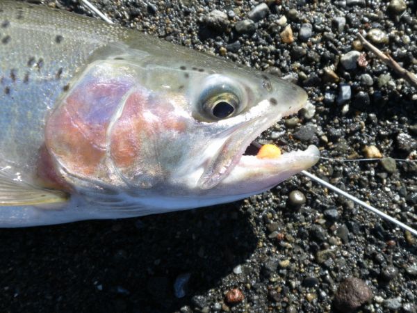With the river level down to a comfortable 32 cumecs and the color dropping out I headed downriver again to have another scout around. On the way I spent an hour in the Braids and landed four fish… the numbers are not important except to illustrate a point. When I arrived at Reed I met an angler who had fished upriver from the bottom of Grace Road and his only fish had been one of those little silver juveniles. I jumped in below him… first chuck I caught his twin brother…the trouts not the anglers! A few casts later the indicator slid under and this time it was a better rainbow may be couple of pounds. Time to move on...I spent the next few hours walking and fishing as far as the Bends and back to Reed for the grand total of zilch ! On the return journey I fished the Braids and had three more plus a couple of near misses.