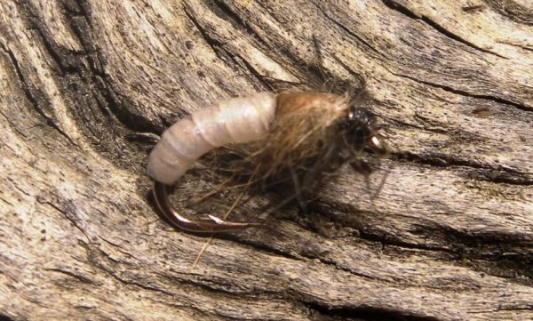 Mine came on the dry and dropper, the head here is perfect for this method. I know we keep banging on about the importance of getting down fast and deep for spawning fish and most of the time that’s what you have to do. In a situation where the bottom is uneven and strewn with large rocks and boulders the fish and the food are in amongst them. So a more natural presentation of the fly is achieved by using this setup and as a bonus you won’t snag up as often. Actually describing the method as dry and dropper is probably a bit misleading because you are really nymphing but not hard down. The large Cicada pattern that I use is purely there to suspend the flies and register the take. You could just as easily substitute a small yarn indicator to achieve the same result because at this time of year I’m not seriously expecting a fish to take the dry.