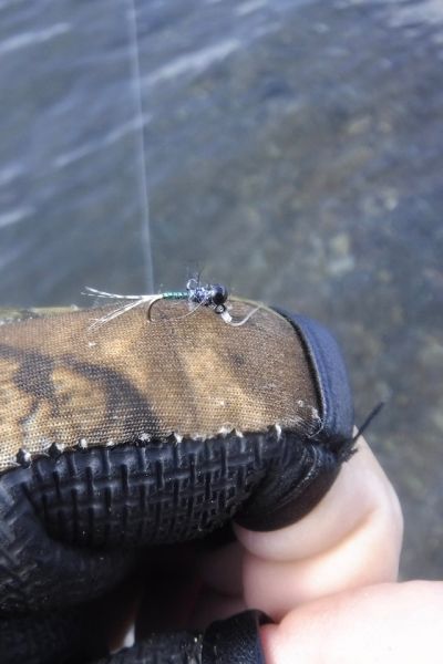 You can of course dispense with the second micro ring and "split shot part" of the rig and fish bog standard heavy Czech nymphs. One on the point and another on the dropper ... as I often do. But with the drop shot rig you can use any pattern in your fly box that usually works for you when you're nymphing. And because the weight needed to "get down" is supplied by the shot ...not the flies ... you can fish much smaller patterns...which is particularly useful at times.