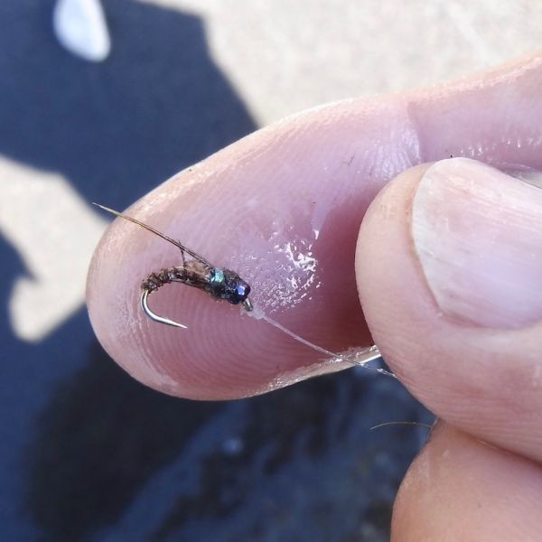 Dry and dropper set-ups better imitate this and in the present conditions are less likely to spook already wary fish.