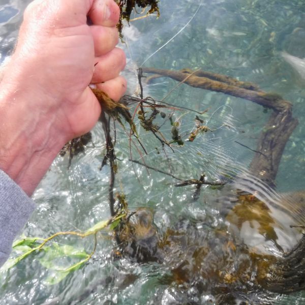 Oh!...before I forget. Remember that snag in my favourite town pool I mentioned last time. Well, my boots got caught up on it again. But this time I managed to lift it up enough to cut most of the lost flies and leader away. There was even a Skagit head down there. With levels even lower this time, I ended up finding another two smaller snarl -ups further out, and cut those away as well. Unfortunately the tree root and branches are still down there so they'll probably continue relieving anglers of their tackle until the next big fresh dumps them somewhere else.