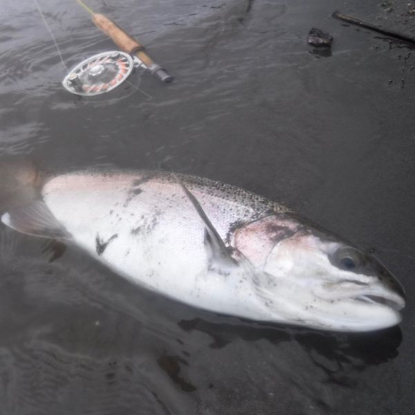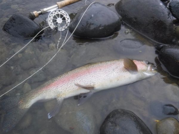 Nothing much has changed on the Tongariro since the last report. Plenty of recovering rainbows around with a few fresh run fish amongst them. And at this time of year less anglers chasing them. When I pulled into Red Hut car park yesterday on a perfect, misty, damp morning there was only one other car parked up.
