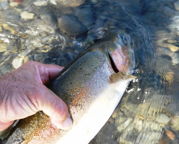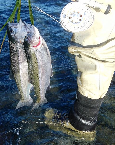 The indicator dipped on the very first cast and I was into another hard fighting fresh run rainbow. The fish were moving through most of the spots…not in huge numbers…but enough to keep things interesting.