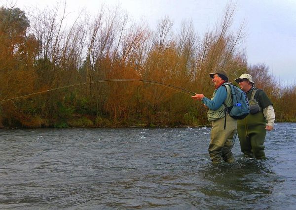As you can see the rubber legs are still working but in places the river is chokka with green caddis, so that has to be a must try fly. Turn a few rocks over and there will also be plenty of mayfly nymphs on the underside. There seem to be more than usual for "winter" may be a side effect of the milder weather this year. That reminds me there was a trout rising for several minutes on the far side of the Sand Pool when I fished there a few days ago. I came across the "trout whisperer" and his class again, this time he was teaching them how to Czech nymph. This Eastern European technique is something you don't often see on the Tongariro. I've watched some of the visiting Slovenian anglers and in the right situation it works well. The guys had already thrashed this run with the indicator but after a few casts using this different presentation and approach were already hooked up. So it does pay to experiment and think outside the square sometimes...they look pretty happy about it too. Right I'd better load up the truck and get on my way.