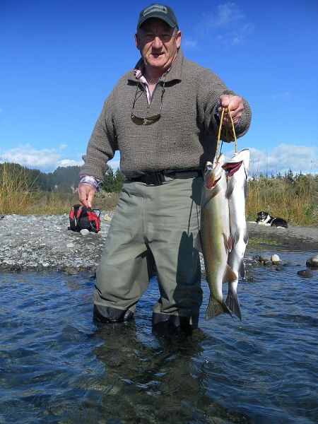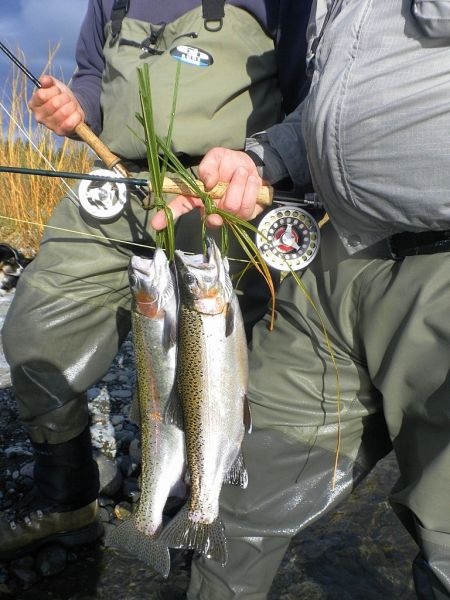 Everything is right with the world this week. There are fish in the river to catch, the AB's and Wales march on and with the settled weather and much lighter evenings its been a great time to be on the Tongariro. Towards the end of last week there was a more even spread of fish and anglers did well with some good fresh hens in the middle and upper reaches. The last few days we seem to have returned once more to a river of two halves. The better fish are coming from the Hydro down unless I've just been unlucky. I had two top blokes out on Sunday, Mark Tomsett who I've guided before and his long-time mate Terry "Coozer" Cooney. They both used to play rugby together but this trip was just going to be a bit of fun...not a competition you understand...yeah right!
