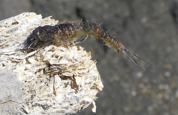 While on the subject of feeding trout the numbers of Mayfly presently in the river are awesome. The hatches have been building steadily for weeks and if you turn over a few rocks you"ll see why. I thought I had taken a pic of one about the size of my hand which had dozens of nymphs on the under-side but I can't seem to find it. I've seen the odd rise and it won't be long before they tune in properly to this plentiful food supply. In the meantime small pheasant tails and other skinny tied patterns are a good choice to imitate the nymphal stage. Pat from Queensland did just that and was pretty pleased to land the nice fish pictured above right. If they get a bit fed up with them a great alternative is the fly pictured below. Its called a "Wiggle Nymph" and has an articulated body. I haven't seen them in the tackle shops but they are simple to tie and fish really nail them. On my way downriver I've fished the Braids a few times and noticed that the true right bypass is also giving up some better fish again. It was "hot" earlier in the year especially around the Plank. With the clearer conditions its been a bit quiet but I've taken some nice big hens there this week. If we get the rain on Sunday and the river colors a little, it may be worth giving Spot X a go. I bumped into Bob Bevece on the river who was doing ok swinging a wet-line. If your a skier whose stayed at Rocky Mountain Chalets in Ohakune you may recognise him. Ever since