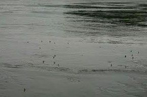 If he catches a fish great...if he doesn't he isn't bothered but the guide is. Last year he'd had a good time in Judges and its a place he enjoys fishing. Providing we take our time he doesn't find the slippery crossing to the TRB to difficult. When we got there around 2.00pm both sides were deserted. Despite the sunshine the wind was gusting from all directions and it wasn't going to be easy. Herbert kept at it stopping when the wind became impossible. Every so often the indicator would dive under just to keep things interesting but those quick takes are easy to miss when the fishing is hard. Then we noticed that the calmer spells in between the gusts were getting longer and a couple of fish began rising at the top of the pool. We swopped rods and moved up, then just as Herbie was halfway through a drift the wind suddenly picked up taking his new hat. At the same time the dry went under and he was into a fish which we landed together with his hat. Over the next hour he had a few more, mainly kelts plus one nice silver fish which we let go in the middle of the river. The wind got up again and the takes stopped as suddenly as they had started. It had been a rough day but we all had a good time including Jake. He has a bit of a special bond with Herbie...I'll have to keep an eye on him just in case he gets dog-napped.
