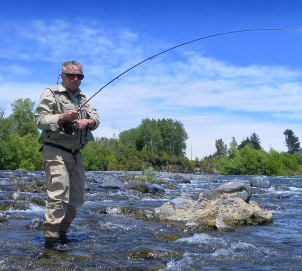 Most of the anglers I know will definitely agree with the "local tavern" bit and a couple of times this week I've found myself sipping a cold beer much earlier than I normally do. Last Friday a previous client of mine arrived from Austria for his annual four week stay at Tongariro River Motel. Herbert { below } has been coming to New Zealand since the nineties mainly to fish the Tongariro. Nowadays he makes the trip to catch up with his favorite guide...no...not me...his best mate Jake. When we caught up on Tuesday Herb was busting to get a day on the river but it was still blowing pretty hard. We agreed on Friday because at that time it looked as if there would be a calmer slot after the rain. Friday morning got off to a bit of a dramatic start...the night before I had met him for a "quiet" drink in the Bridge Motel. He was already sitting by the bar when I arrived and was in full holiday mood. After a couple of hours he realised it would be unwise to drive even the short distance back to T.R.M. I'd only had a couple of beers so offered to take him home, he handed me his keys and we jumped into my wagon. As we drove out I could see Herbies' rental Mitsubishi saloon was the only vehicle left in the car-park at the rear of the motel and easily seen from my unit. Next morning just as I finished putting the last of the gear into the wagon I glanced over to Herbies' car...bloody hell...it wasn't there! I drove straight over to tell him the awful news that some toe-rag had not only pinched his rental wheels but I remembered he had left all his fishing tackle in the back. As we pulled up I could see him waiting for us outside his unit obviously looking forward to the day ahead. Subtle as ever I blurted out that his car had been stolen and we should immediately contact the police. The color drained from his face when he realised I wasn't joking but before getting the authorities' involved he asked me to take him to where he had parked up the previous night. We drove straight to the back of the Bridge Motel and I pulled up next to the now empty parking space which only hours before was occupied by Herbies' car. We sat there for a few seconds looking at one and other...I'm wondering why he isn't getting out to have a quick check around and he's thinking why has this stupid guide stopped here. Yeah... you've got it...it wasn't his car. The one that I had assumed was Herbies' was an identical model that belonged to a guest who had left in the early hours...his was still parked safe and sound out the front hidden from view by a lorry! ![Jake and his best mate.]()