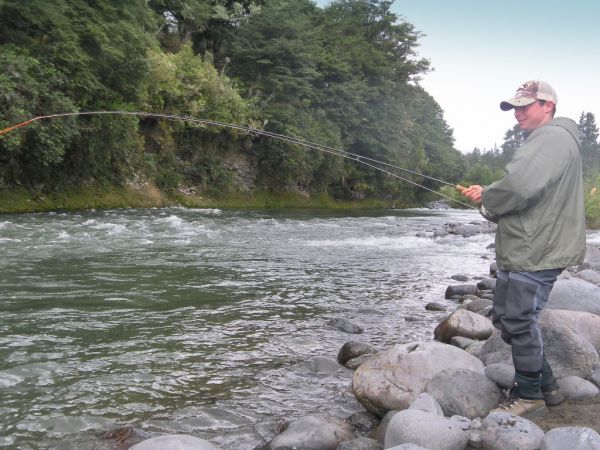 I only fished myself for a couple of hours on two occasions and didn't get a touch on one of them. Lorenzo who lives in Milan and works in the banking industry was on a tight schedule for his two week New Zealand visit. Come rain or shine Sunday was the only day he could set aside for the Tongariro so undeterred he fished in awful conditions for a beginner. We blanked in the usual town spots but the wind and rain didn't dampen his spirits. As the river began to color up his determination eventually paid off when he landed a trout in the Blue Pool.