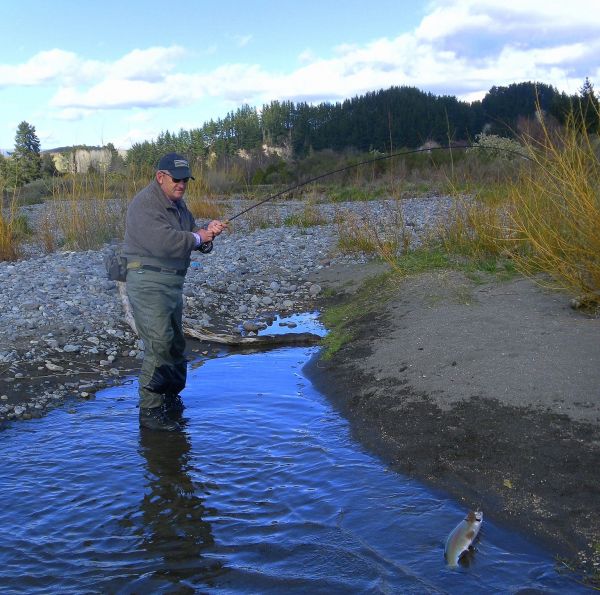 Trout and their off-spring thrive in the cold, fast, well oxygenated water of clear stony rivers like the Tongariro. True they feed mainly below the surface but you don't see trout grubbing around the river bed looking for a meal. To do this they would have to have their head down and tail up which would waste precious energy. In faster water trout are masters at conserving their energy reserves and learned long ago its far easier to take up a position near the bottom where the velocity of the moving water is less and let the food come to them.