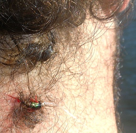 Using sink putty or shot instead of a bomb also works out cheaper in snaggy areas because its one less hook to get caught amongst any debris on the bottom ... or in Ben's case the back of his head ! Most of the time my own preference is to stick with the bomb and hope the hook gets caught in a trouts mouth ... preferably a big one.