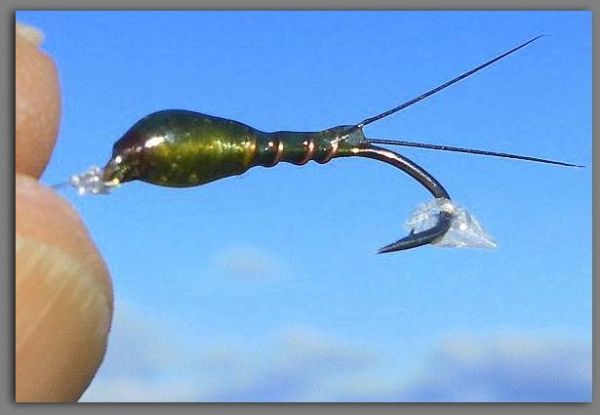 Sawyer tied his famous creation without legs because he'd noticed that while swimming the legs were folded back keeping the nymphs streamlined shape.