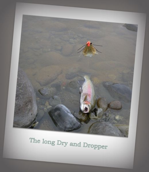 " When you use a large dry as an indicator (eg cicada etc) how long is the leader from the dry to the nymph, caddis etc? Do you try and have the point fly on or near the bottom? I imagine this would be required when fishing for rainbows but not necessarily for browns?" Stay well, Murray