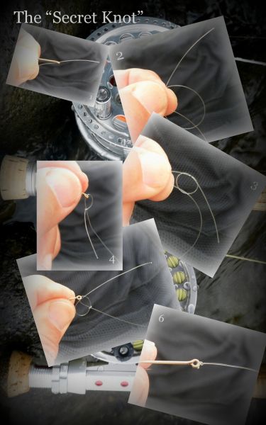 Some of the trout in his patch were notoriously finnicky and would closely examine the dry before they sucked it in. So after countless fishy refusals he came up with the smallest knot ever invented ... which he called the " Secret Knot "