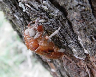When the nymph reaches maturity it waits for the ground temperature to reach a constant temperature of around 18 degrees C and if the ground moisture content is also suitable the nymphs burrow upwards where they emerge en masse under cover of darkness. Thousands of them then climb nearby trees and bushes to undergo the final molt.