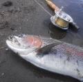 | Nothing much has changed on the Tongariro since the last report. Plenty of recovering rainbows around with a few fresh run fish amongst them. And at this time of year less anglers chasing them. When I pulled into Red Hut car park yesterday on a perfect, misty, damp morning there was only one other car parked up. We'd had some heavy overnight drizzle with more forecast but as I crossed the bridge to head up the TRB it was obvious it had made very little difference to the flows. But it had been enough to make the trudge up to the Fan a "refreshing" experience as I picked my way through the satur ... |