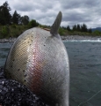 | The wet weather they'd forecast all week turned out to be nothing more than a few heavy showers and the flows never got above thirty cumecs. It did however put a slight milky tinge into the river ... although it's still very much a case of summer tactics for the best results. Nowhere near as many anglers on the Tongariro this week. In fact I've seen more rafters than fishermen when I've been upriver. At this time of year the rafting companies are busy with end of term school trips. And its not unusual to have six or seven rafts drift past packed with excited kids enjoying a day out on the wate ... |